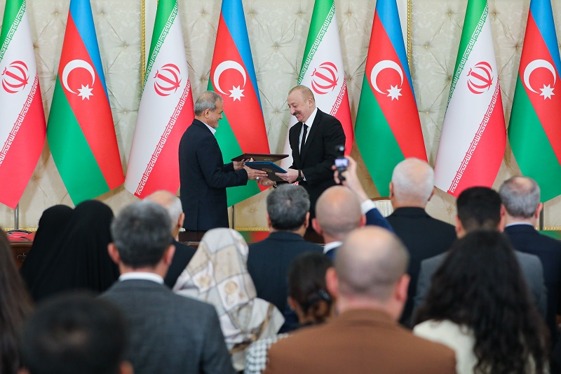 «الهام علی‌اف» در نشست خبری مشترک با پزشکیان با اشاره به امضای این تفاهم‌نامه‌های مشترک، گفت: «امروز اسناد بسیار مهمی به امضا رسید، امضای این اسناد با حضور روسای جمهور دو کشور، نشان‌دهنده‌ تلاش ما برای نزدیکی هرچه بیشتر در تمامی حوزه‌ها است.»