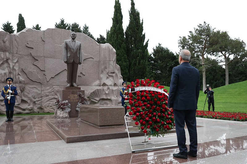 رئیس جمهوری اسلامی ایران همچنین در محل آرامگاه حیدر علی‌اف رئیس جمهور فقید این کشور و یادمان شهدای ۲۰ ژانویه ۱۹۹۰ باکو نیز حضور یافت و با اهدای تاج گل ادای احترام کرد.